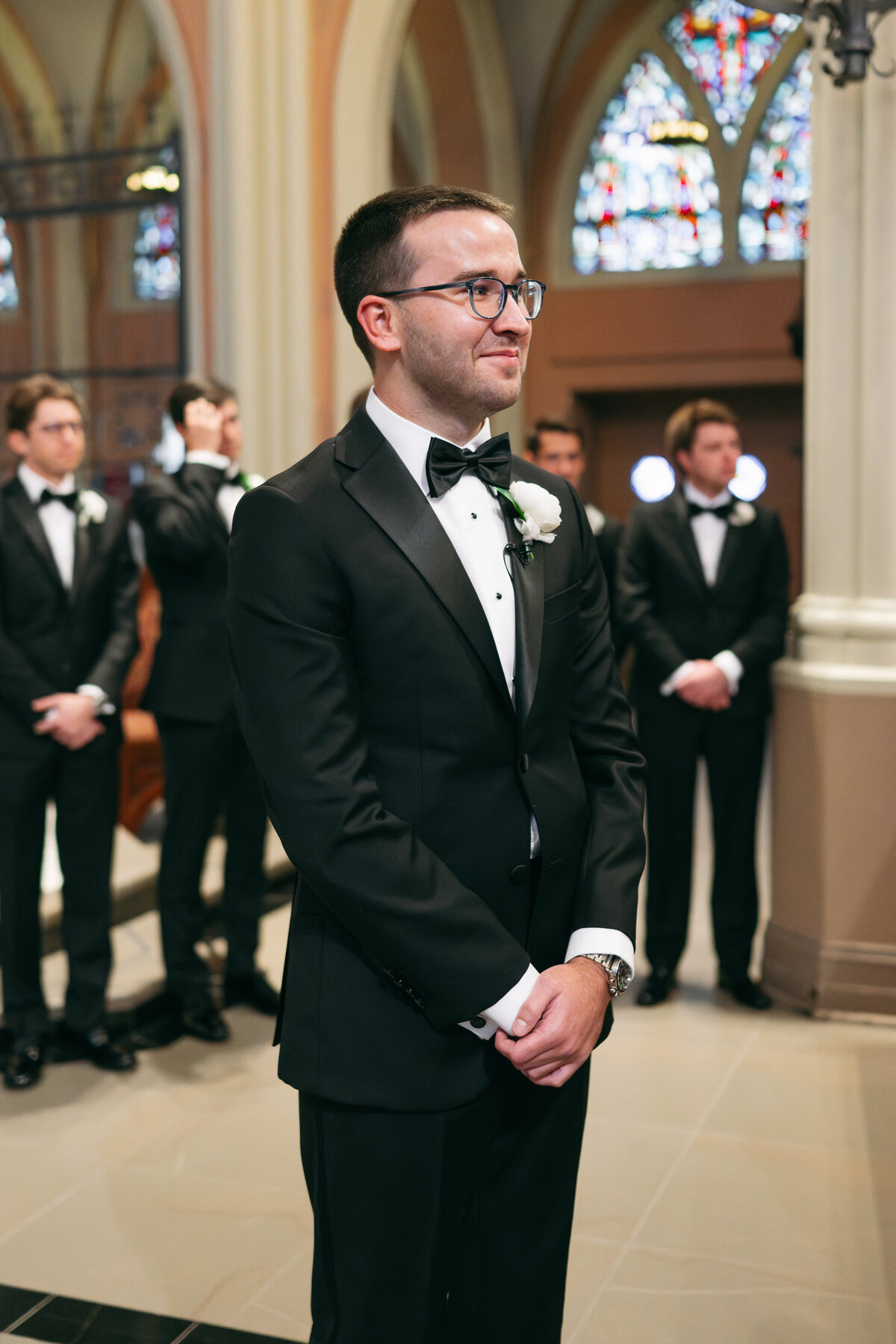 Patrick and Tess met studying abroad in Madrid their sophomore year of college. Who knew it would take traveling thousands of miles away for their paths to cross. Through living just a floor away from each other, their love story blossomed amidst their time abroad! Tess shared that her favorite thing about Patrick was that "whenever he is around, I always feel at ease, at home, and safe. He just makes every situation and occasion better by being around!". We loved watching their romance throughout this process. Tess had a clear vision for her wedding—a classic black and white aesthetic. Every detail was intentionally curated to bring that vision to life. The sweetheart table was adorned with a breathtaking sea of white anemones. Each menu featured meticulously hand-tied black bows, and the reception table scapes were a perfect monochrome dream, from the florals and candles to the flatware. The result was an atmosphere that felt timeless, sophisticated, and deeply personal to the couple. For their day I focused on timeless imagery and capturing their family members. I also wanted to highlight Tess' stunning gown. She felt like royalty and I wanted to remember that forever!